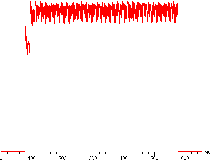 Видно, что на максимальной и средней яркости амплитуда модуляции не очень большая (точнее скважность явно низкая), в итоге видимого мерцания нет. Однако при сильном понижении яркости появляется модуляция с большой относительной амплитудой (и высокой скважностью), ее наличие уже можно увидеть в тесте на присутствие стробоскопического эффекта или просто при быстром движении глаз. В зависимости от индивидуальной чувствительности такое мерцание может вызывать повышенную утомляемость. Впрочем, частота довольно высокая и фаза модуляции различается по площади экрана, поэтому негативный эффект от мерцания снижен.