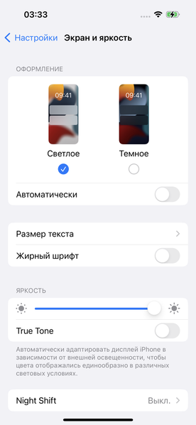 Присутствует функция True Tone, которая, если ее включить, подстраивает цветовой баланс под условия окружающей среды. Мы включили эту функцию и проверили, как она работает: