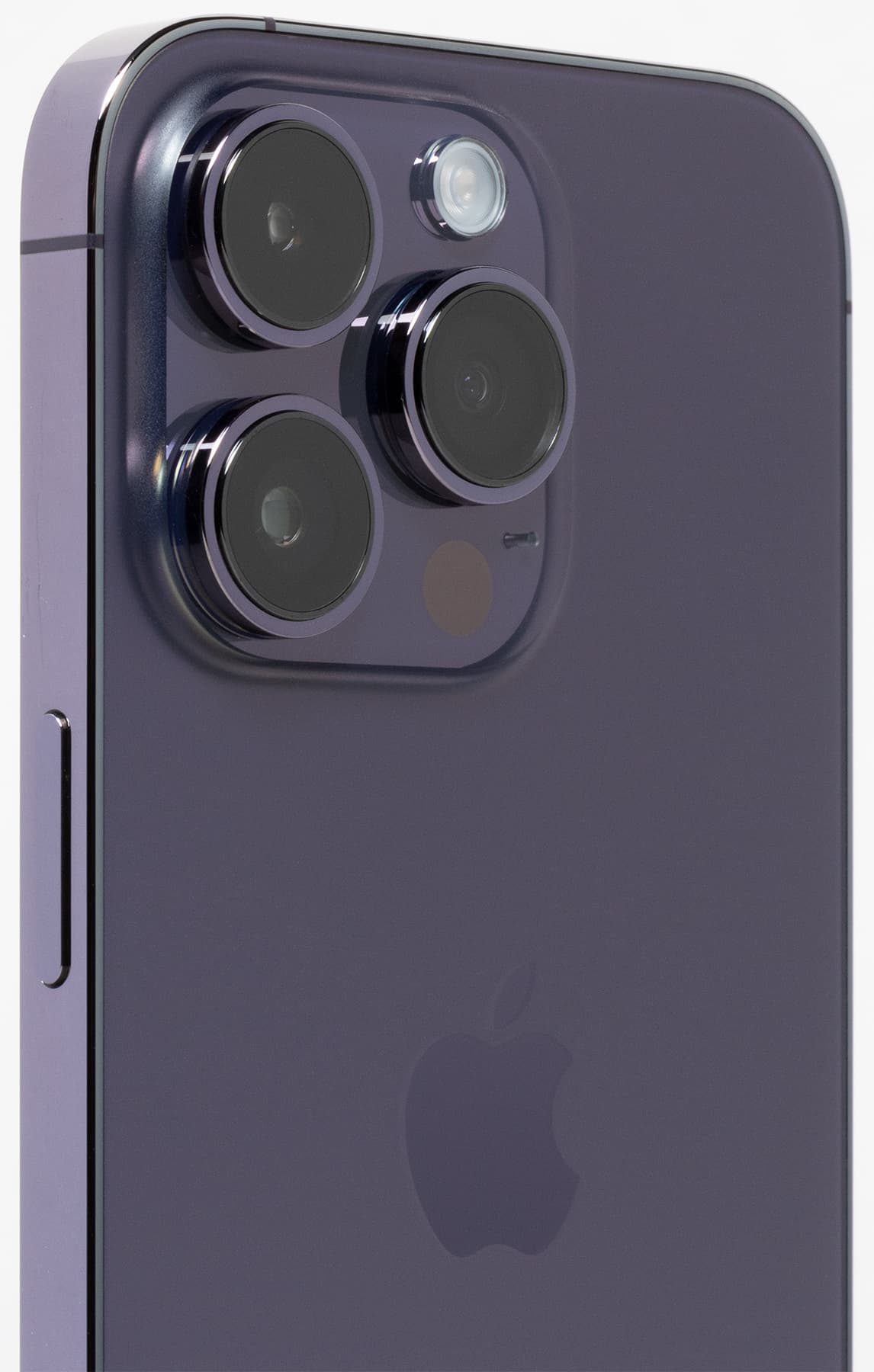 Но — идем дальше. Вторая важная особенность iPhone 14 Pro — увеличившийся блок камер. Говоря об iPhone 13 Pro, мы отмечали, что и блок, и глазки камер стали больше, чем у iPhone 12 Pro. Теперь и то, и другое еще подросло. Размер площадки по горизонтали составил 37 мм (при 35 мм у iPhone 13 Pro и 32 мм у iPhone 12 Pro), а для глазков получилось 16, 13 и 11 мм соответственно.