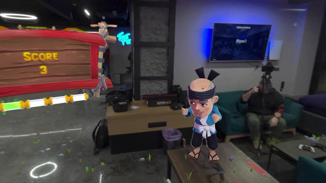 И еще одно перспективное применение: игры. Они могут быть как полностью виртуальными (VR), так и с дополненной реальностью (AR) — например, задействующими предметы в помещении. Вот так, например, выглядит Fruit Ninja.