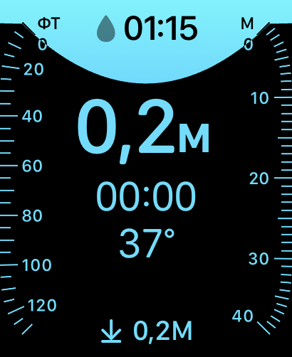 Далее, при погружении в воду часы умеют определять температуру и глубину — и то, и другое очень приблизительно. Впрочем, для дайвинга это вполне подойдет. В случае долгого нахождения в воде часы автоматически запускают это приложение. С Watch Ultra можно погружаться на глубину до 40 метров.