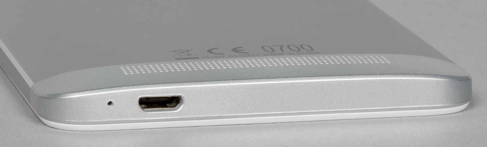 Внизу в торце расположен разъем Micro-USB, поддерживающий подключение внешних устройств в режиме USB OTG, а рядом с ним — отверстие разговорного микрофона.