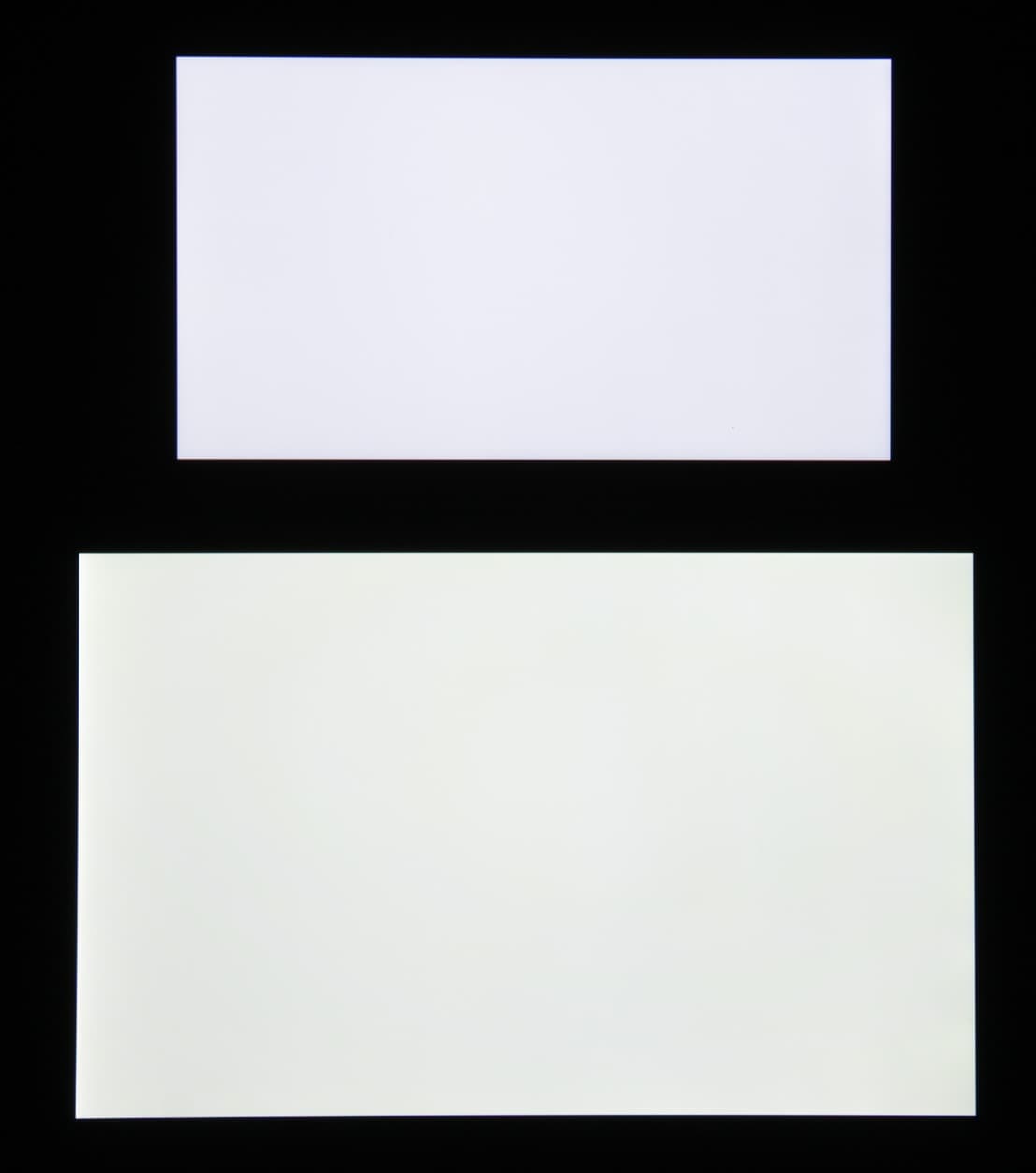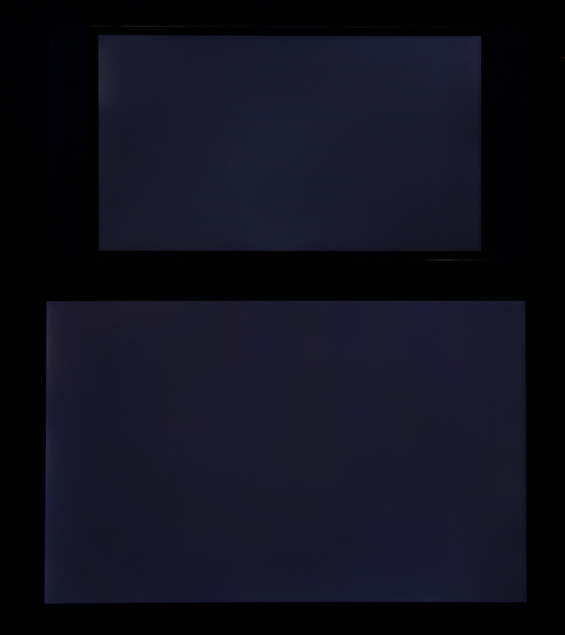 При перпендикулярном взгляде равномерность черного поля неидеальная, так как местами ближе к краю яркость черного заметно повышается, также сквозь щели корпуса просвечивают светодиоды подсветки, что смотрится не очень хорошо: