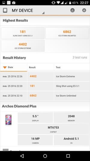 Что касается конкурирующих решений, то при сравнении схожих по позиционированию SoC MediaTek MT6753 и Qualcomm Snapdragon 615 решение MediaTek ожидаемо оказалось чуть быстрее. Все остальные современные решения, такие как Huawei HiSilicon Kirin 930/935, Samsung Exynos 7420, MediaTek MT6752, и даже такие устаревшие решения, как Qualcomm Snapdragon 801, оказываются в любом случае мощнее героя обзора. Тем не менее, возможностей данной SoC на текущий момент должно хватать для выполнения большинства стандартных задач. С играми пока особых проблем не замечено, «Танки», например, смартфоном проигрываются без каких-либо проблем и задержек, хотя задняя стенка корпуса при этом ощутимо нагревается.
