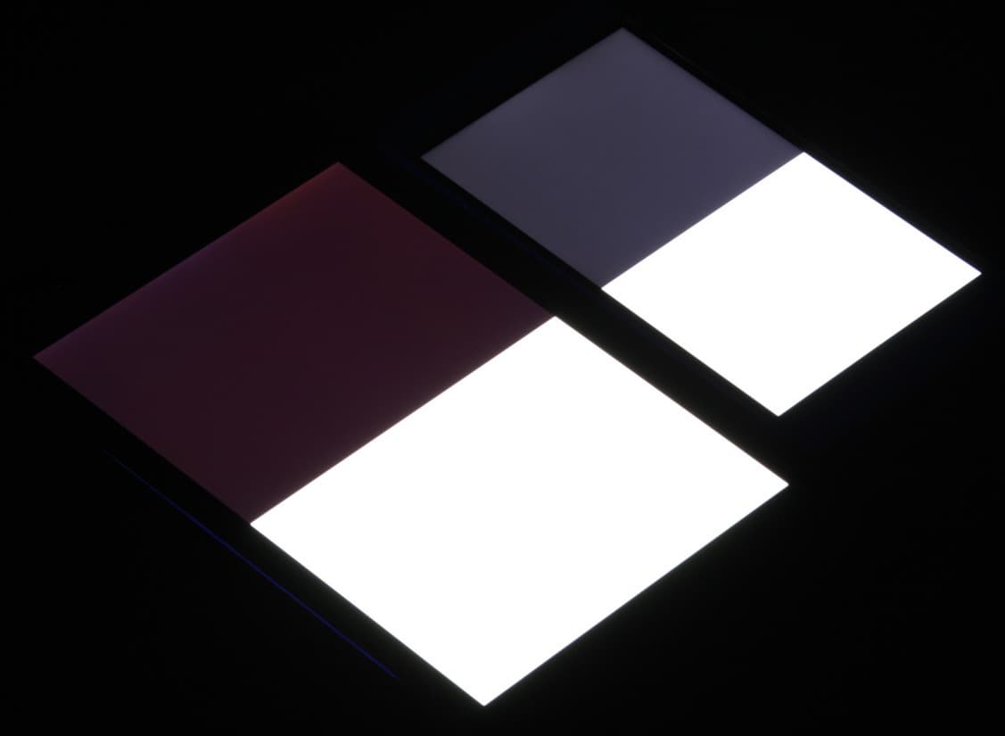 Яркость под углом у экранов уменьшилась, но у Archos Diamond Plus экран под этим углом все же немного темнее (яркость по фотографиям 219 против 234 у Nexus 7). Черное поле при отклонении по диагонали высветляется сильно и приобретает легкий красноватый или синеватый оттенок. Фотографии ниже это демонстрируют (яркость белых участков в перпендикулярном плоскости экранов направлении одинаковая!):