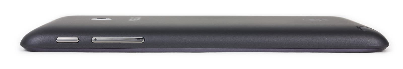 По фотографиям «в профиль» можно оценить, что Fonepad Note 6 имеет гораздо более покатую форму, чем другие планшетофоны. Чтобы зафиксировать устройство в руке, его действительно нужно обхватить, и в силу размера конкретной ладони это может быть утомительно и неудобно — аспект, на который стоит обратить пристальное внимание при покупке. Благодаря широким полям вероятность случайных нажатий сводится на нет, даже если ладонь нависает над зеркальной панелью: в этом заслуга широких боковых полей.