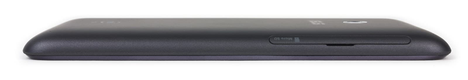 На левом торце находится длинная заглушка, прикрывающая разъемы для Micro-SIM и microSD. Карточки легко устанавливаются без применения подручных инструментов. Мы не рекомендуем часто их менять, поскольку в таком случае заглушка, в силу своих размеров, через некоторое время начнет закрываться не полностью.