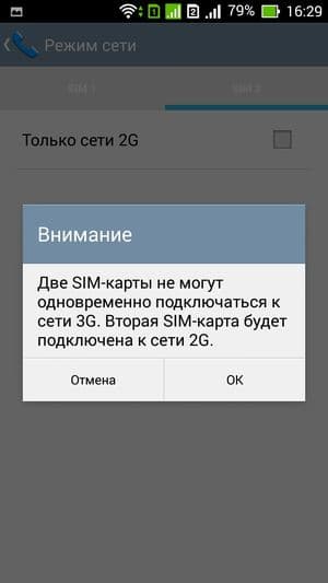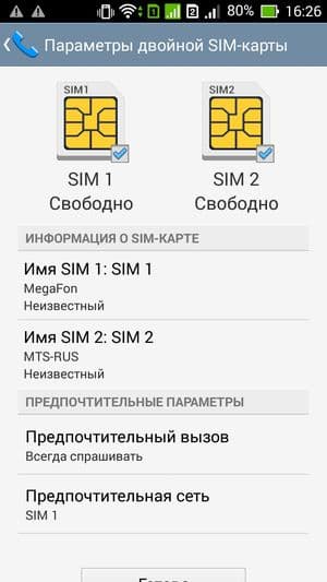 Смартфон поддерживает работу с двумя SIM-картами, и в целом работа с ними в меню организована по знакомому принципу: можно любую из SIM-карт назначить основной для организации голосовых звонков, передачи данных или отправки SMS-сообщений; при наборе номера также можно выбрать желаемую карту в контекстном подменю. С сетями 3G может работать SIM-карта в любом слоте, однако одновременно в этом режиме может работать лишь одна из карт (вторая будет работать только в 2G). Для смены назначений слотов карточки менять местами не требуется — это можно сделать прямо из меню телефона. Работа с двумя SIM-картами организована по привычному стандарту Dual SIM Dual Standby, когда обе карты могут находиться в активном режиме ожидания, но одновременно работать не могут — радиомодуль здесь только один.