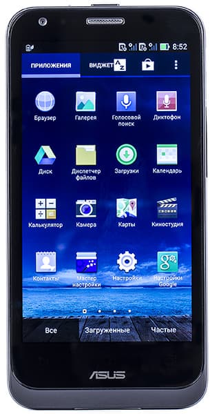 К звучанию динамиков Asus Padfone Е особых претензий нет. Звук достаточно громкий, и при этом он остается чистым во всем спектре частот. Голос знакомого собеседника, тембр и интонация остаются узнаваемыми, разговор вполне комфортен. Решетка для выхода звука здесь врезана в заднюю стенку, так что звук приглушается, когда аппарат лежит на столе.