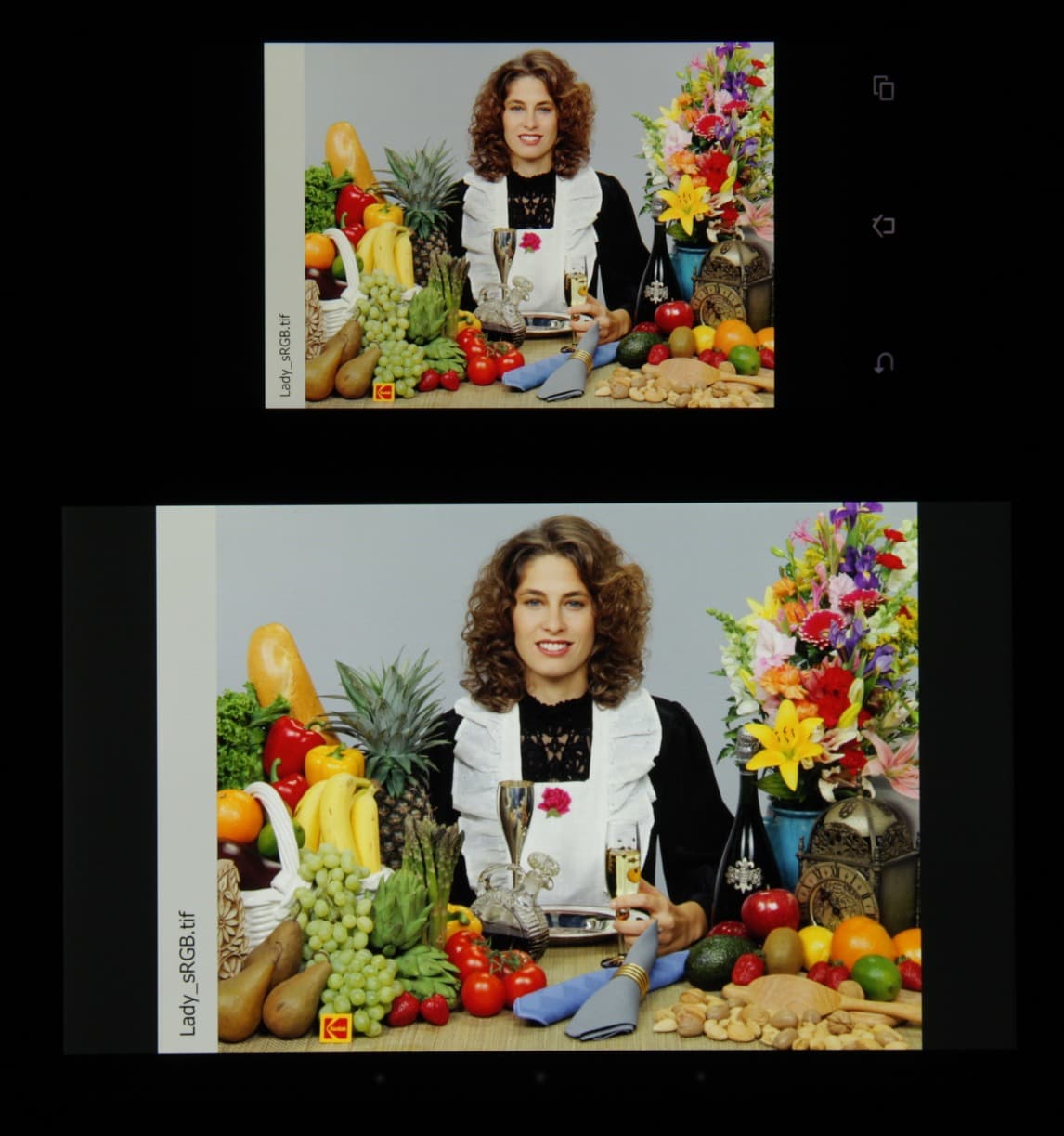 Отметим хорошую равномерность яркости и цветового тона белого поля. И тестовая картинка: