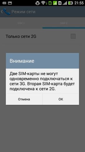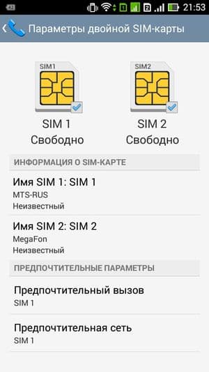 Смартфон поддерживает работу с двумя SIM-картами, и в целом работа с ними в меню организована по знакомому принципу: можно любую из SIM-карт назначить основной для организации голосовых звонков, передачи данных или отправки SMS-сообщений; при наборе номера также можно выбрать желаемую карту в контекстном подменю. С сетями 3G может работать SIM-карта в любом слоте, однако одновременно в этом режиме может работать лишь одна из карт (вторая будет работать только в 2G). Для смены назначений слотов не требуется менять карточки местами — это можно сделать прямо из меню телефона. Работа с двумя SIM-картами организована по привычному стандарту Dual SIM Dual Standby, когда обе карты могут находиться в активном режиме ожидания, но одновременно работать не могут — радиомодуль здесь только один.