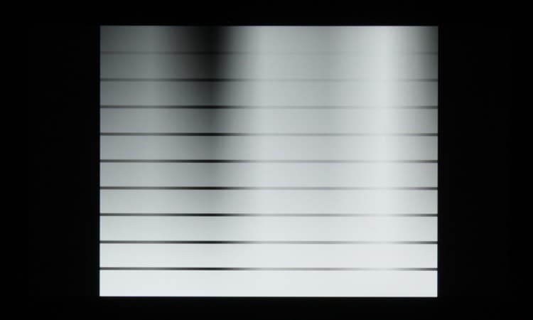 Из-за динамической подстройки яркости подсветки в соответствии с характером выводимого изображения (на светлых изображениях яркость немного повышается, на темных — понижается) полученная зависимость яркости от оттенка (гамма-кривая) не соответствует гамма-кривой статичного изображения, так как измерения проводились при последовательном выводе оттенков серого почти на весь экран. По этой причине, ряд тестов — определение контрастности и времени отклика, сравнение засветки черного под углами — мы проводили при выводе специальных шаблонов с неизменно средней яркостью, а не однотонных полей во весь экран. Отметим, что в некоторых случаях эта подстройка яркости заметна невооруженным глазом в виде неожиданного скачка яркости и временами несколько раздражает.