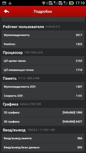 | AnTuTu 4.х (больше — лучше) | 20258 | 20330 | 17283 | 17164 | 12340 |