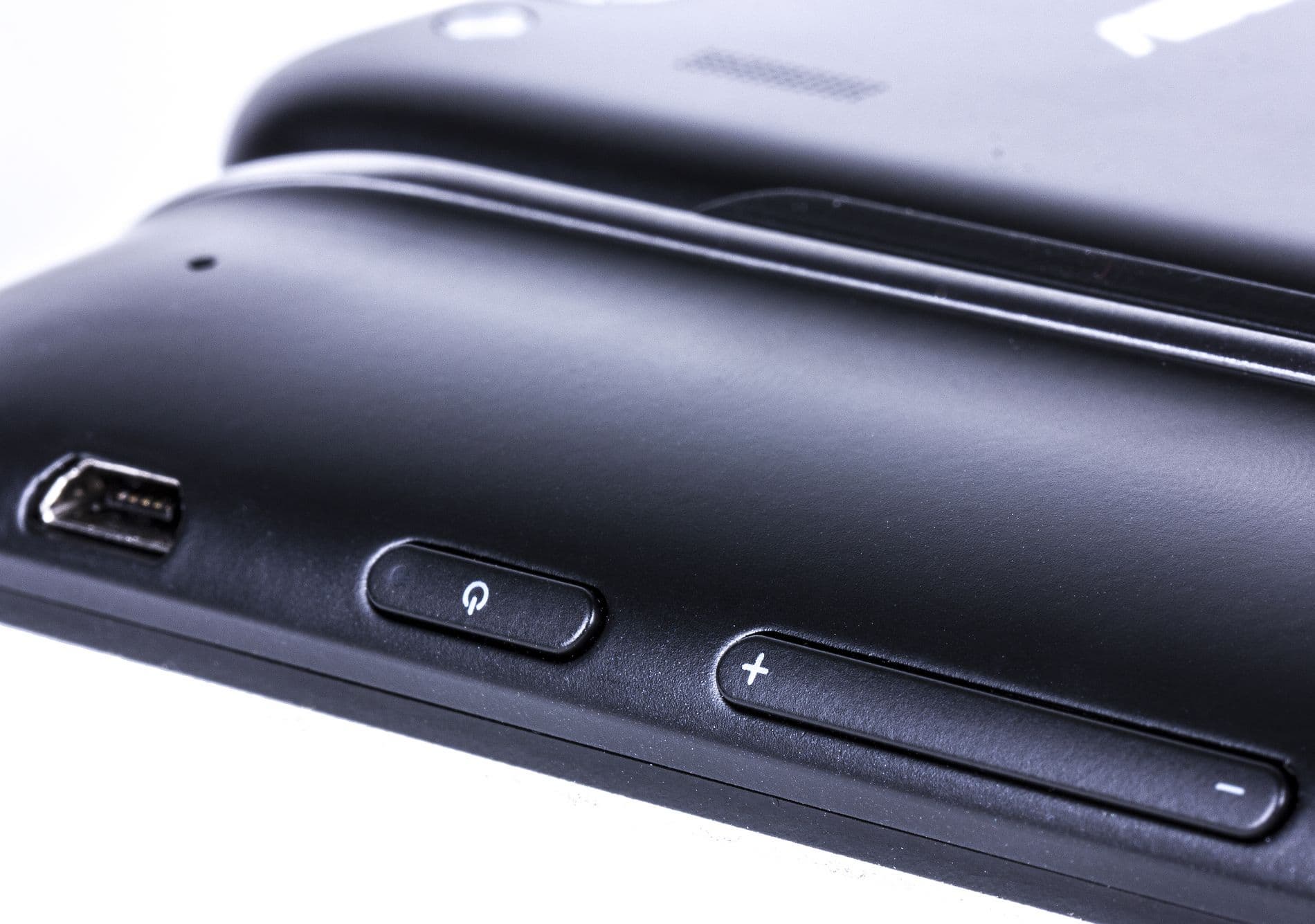 Механических аппаратных клавиш на боках устройства всего две, и обе разместили на одной — правой — грани. Разъем Micro-USB, позволяющий подключение внешних устройств (OTG) здесь разместили не снизу, а сбоку, потому что в нижнем торце оборудован другой разъем — проприетарный 24-контактный, служащий для соединения с разъемом док-станции.