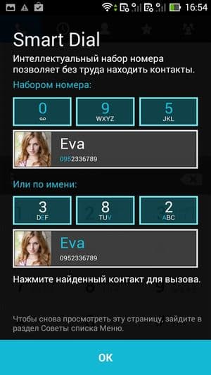 Прорисовка букв и цифр виртуальных клавиатур вполне комфортна для управления. Раскладка и расположение клавиш стандартное: переключение языков здесь осуществляется нажатием на специальную кнопку с изображением глобуса, также в наличии выделенный ряд с цифрами — очень удобно, нет необходимости каждый раз переключать раскладку. Телефонное приложение поддерживает Smart Dial, то есть во время набора телефонного номера сразу осуществляется и поиск по первым буквам в контактах. Очень удобная функциональность, к которой мгновенно привыкаешь, но которая иногда отсутствует изначально в некоторых смартфонах, например Apple iPhone или Meizu MX3. Имеется возможность ввода символов безотрывным скольжением пальца от кнопки к кнопке (Swype).