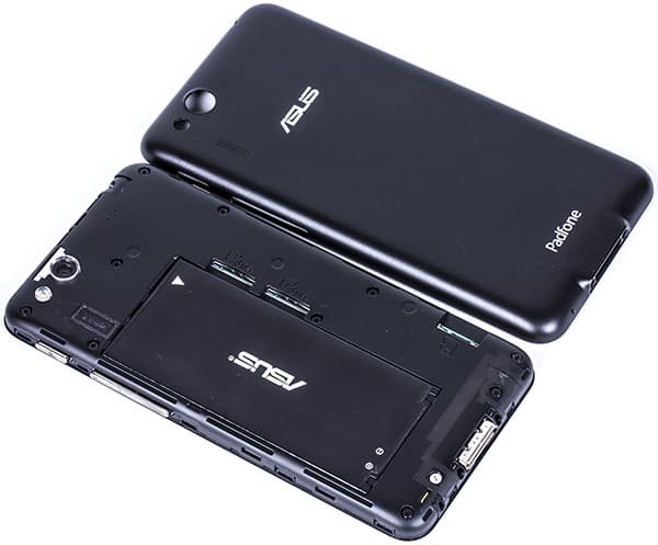 Внешним своим видом смартфон Asus Padfone mini 4.3 совершенно не напоминает премиальный продукт — впрочем, он таковым и не является, в отличие от своего старшего собрата, Asus Padfone Infinity. Здесь все проще: материалы корпуса — сплошной пластик, металла нет, сам корпус состоит из двух половинок, включая съемную заднюю крышку.