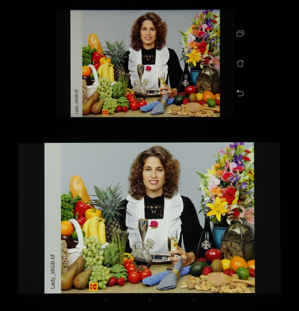 Видно, что цвета не сильно изменились у обоих экранов, контраст уменьшился несущественно. И белое поле: