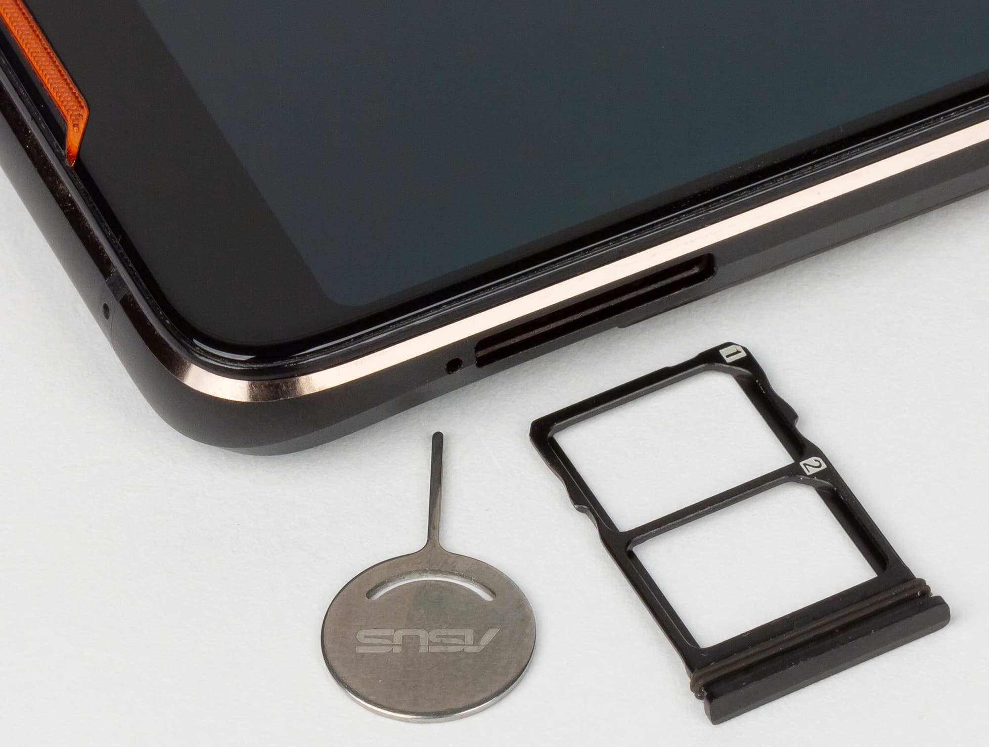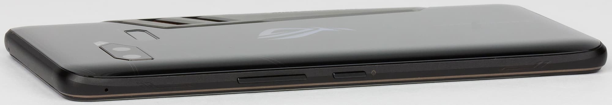 Элементов на корпусе Asus ROG Phone установлено больше, чем в обычном смартфоне. Во-первых, помимо двух стандартных механических клавиш на боковых гранях имеется еще три сенсорных площадки AirTrigger, обозначенных фирменными пиктограммами. Они также задействуются в роли кнопок, причем реагирующих на силу нажатия.