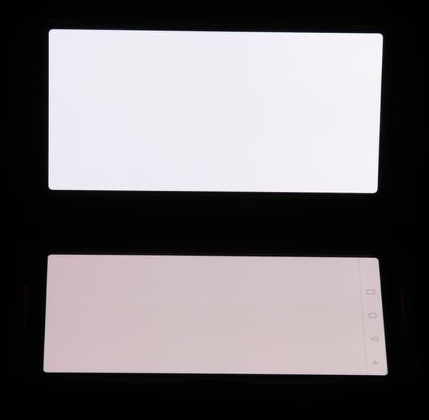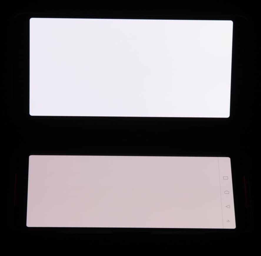Видно, что цвета не сильно изменились у обоих экранов и яркость у Asus ROG Phone под углом заметно выше. И белое поле: