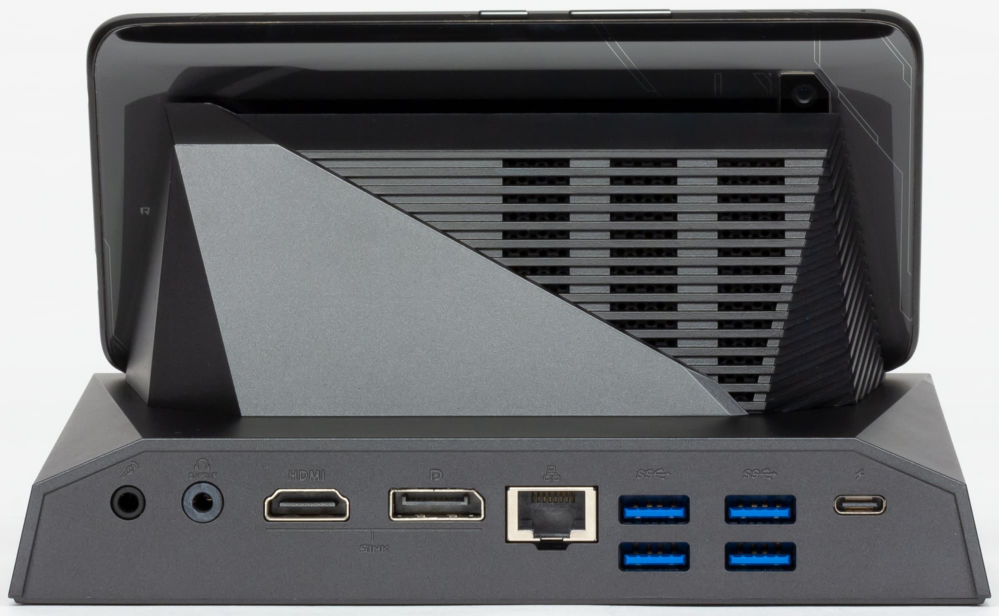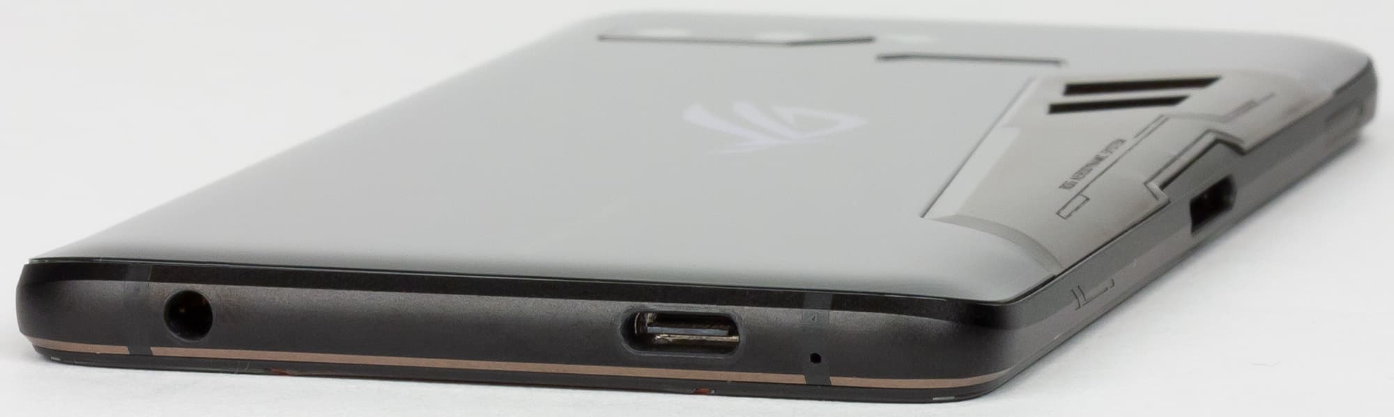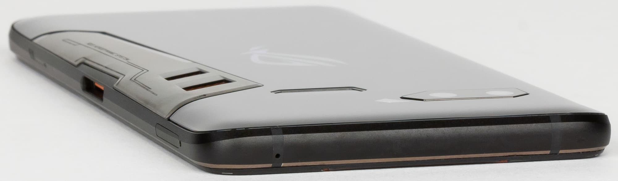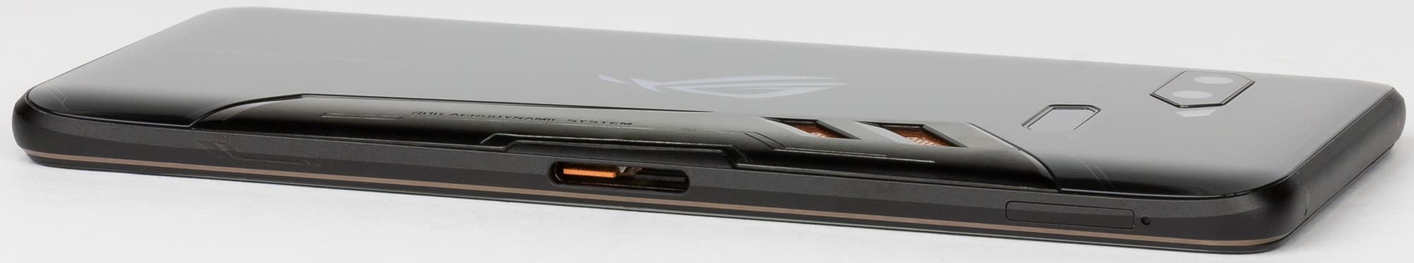 Во-вторых, на одной из боковин можно найти специальный разъем с 48-контактным коннектором для зарядки в ландшафтном расположении. Через боковой разъем можно также подключать гарнитуру, съемный вентилятор AeroActive и другую периферию — для игрового смартфона ROG Phone разработан целый ряд уникальных аксессуаров.