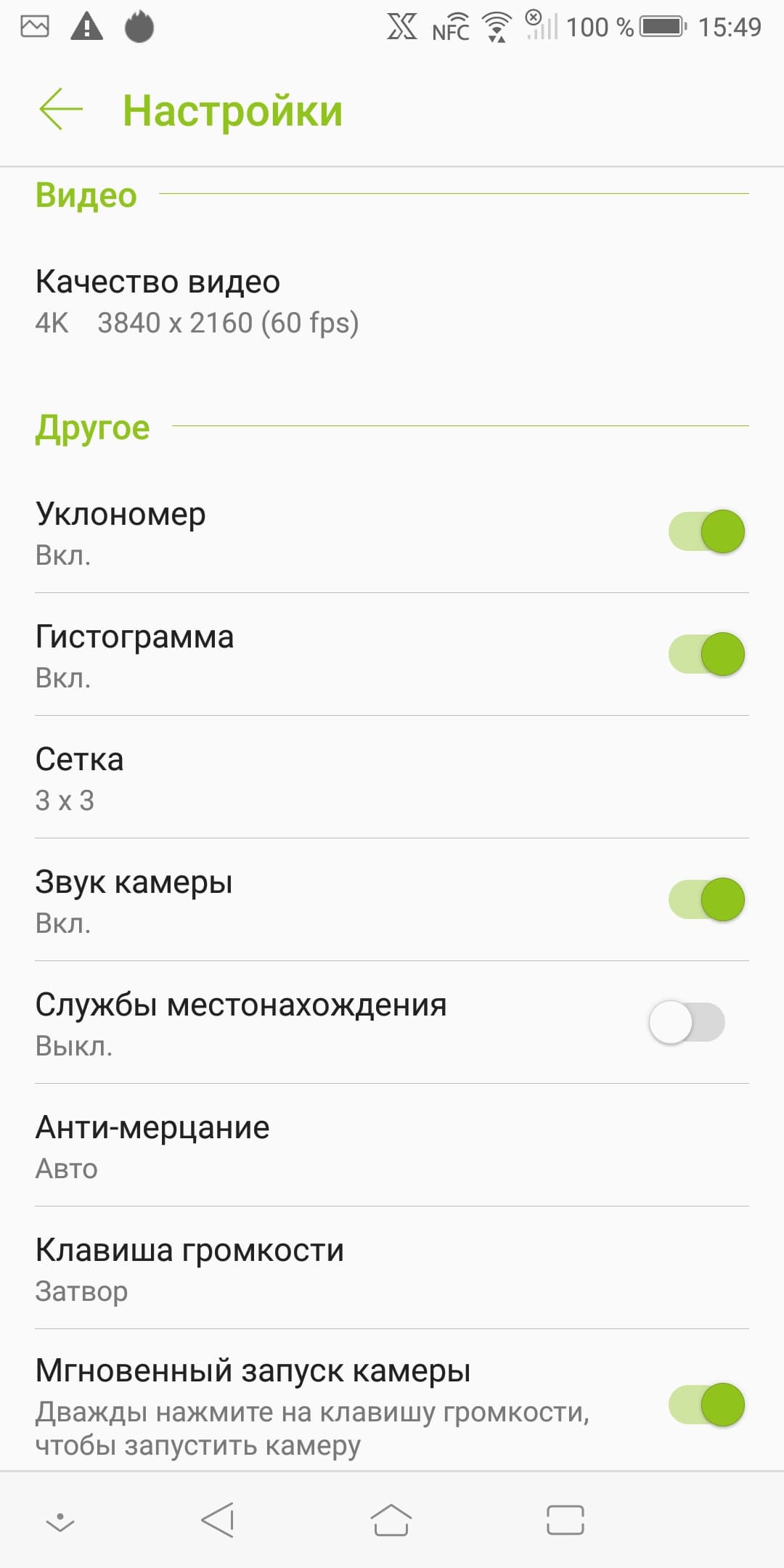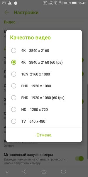 Видео можно снимать в формате 4K при 60 fps, но в этом режиме (и в 1080р60) из настроек исчезает кнопка включения стабилизации. Впрочем, по ощущениям, именно в режимах с 60 fps съемка с рук получается комфортнее и плавнее, чем в 4К и 1080р при 30 fps, хотя там возможно включение стабилизации.