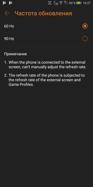 Экран в этом смартфоне интересен тем, что в настройках можно выбрать частоту обновления экрана 60 или 90 Гц.