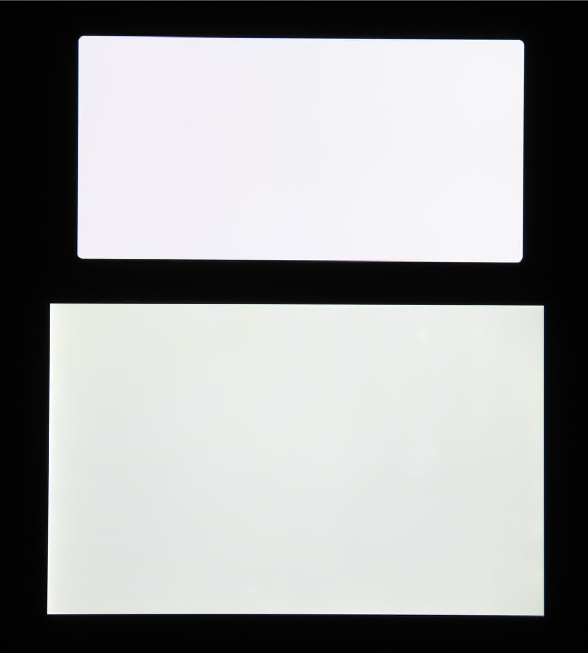 Экран характеризуется великолепными углами обзора. Правда, белый цвет при отклонении даже на небольшие углы слегка меняется в оттенке, но выражено это слабо. Черный же цвет остается просто черным под любыми углами. Он настолько черный, что параметр контрастности в данном случае неприменим. Для сравнения приведем фотографии, на которых на экраны Asus ROG Phone и Google Nexus 7 (2013) (далее просто Nexus 7) выведены одинаковые изображения, при этом яркость экранов изначально установлена примерно на 200 кд/м², а цветовой баланс на фотоаппарате принудительно переключен на 6500 К.