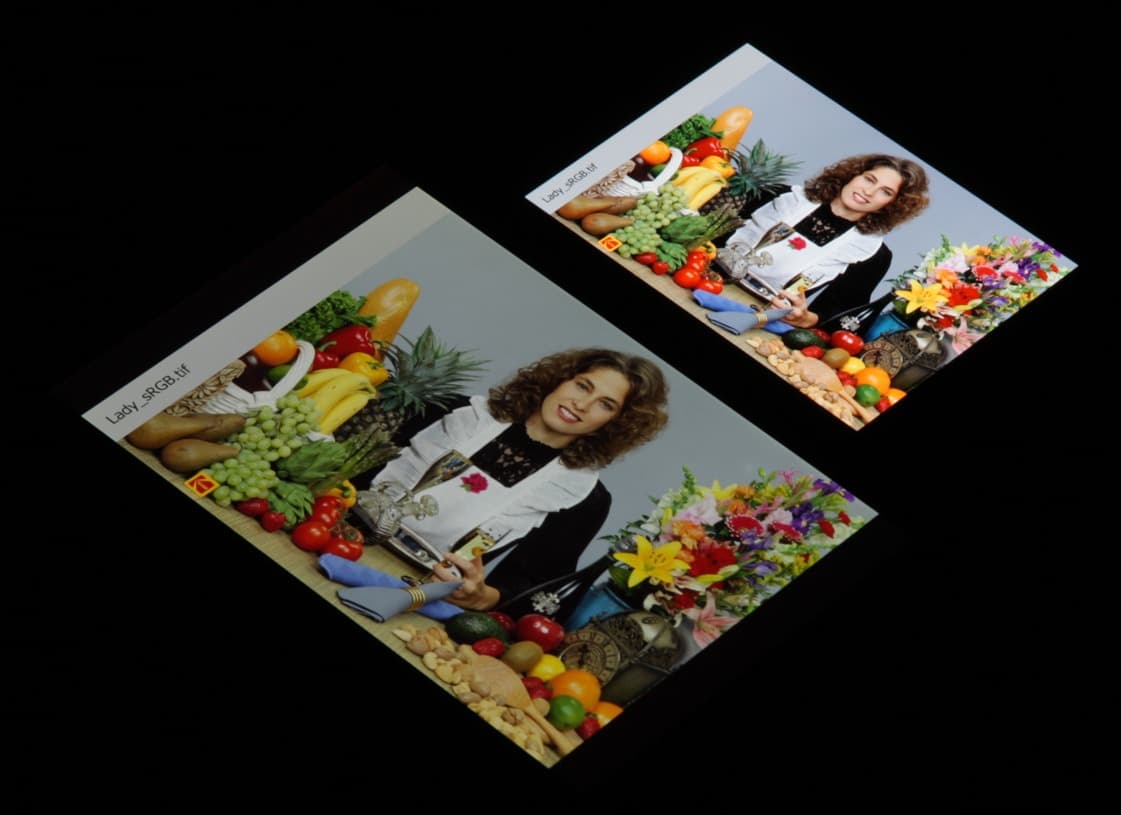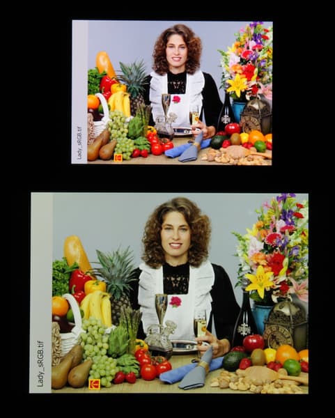 К сожалению, в итоге цвета изображений — рисунков, фотографий и фильмов, — ориентированных на пространство sRGB (а таких подавляющее большинство), имеют неестественную насыщенность. Особенно это заметно на узнаваемых оттенках, например на оттенках кожи. Результат приведен на фотографиях выше.