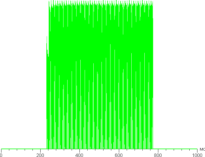 Переключение состояния элементов матрицы выполняется практически мгновенно, но на фронте включения может присутствовать ступенька шириной примерно 11 мс (что соответствует частоте обновления экрана в 90 Гц). Например, так выглядит зависимость яркости от времени при переходе от черного к белому и обратно: