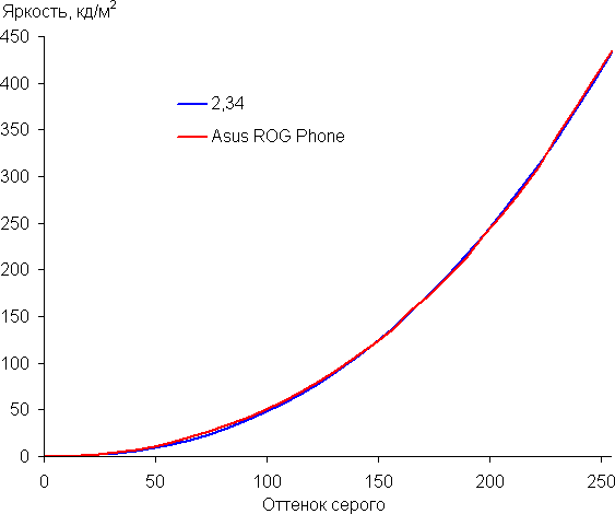 Напомним, что в случае OLED-экранов яркость фрагментов изображения динамично меняется в соответствии с характером выводимого изображения — уменьшается для светлых в целом изображений. В итоге полученная зависимость яркости от оттенка (гамма-кривая), скорее всего, не соответствует гамма-кривой статичного изображения, так как измерения проводились при последовательном выводе оттенков серого почти на весь экран.