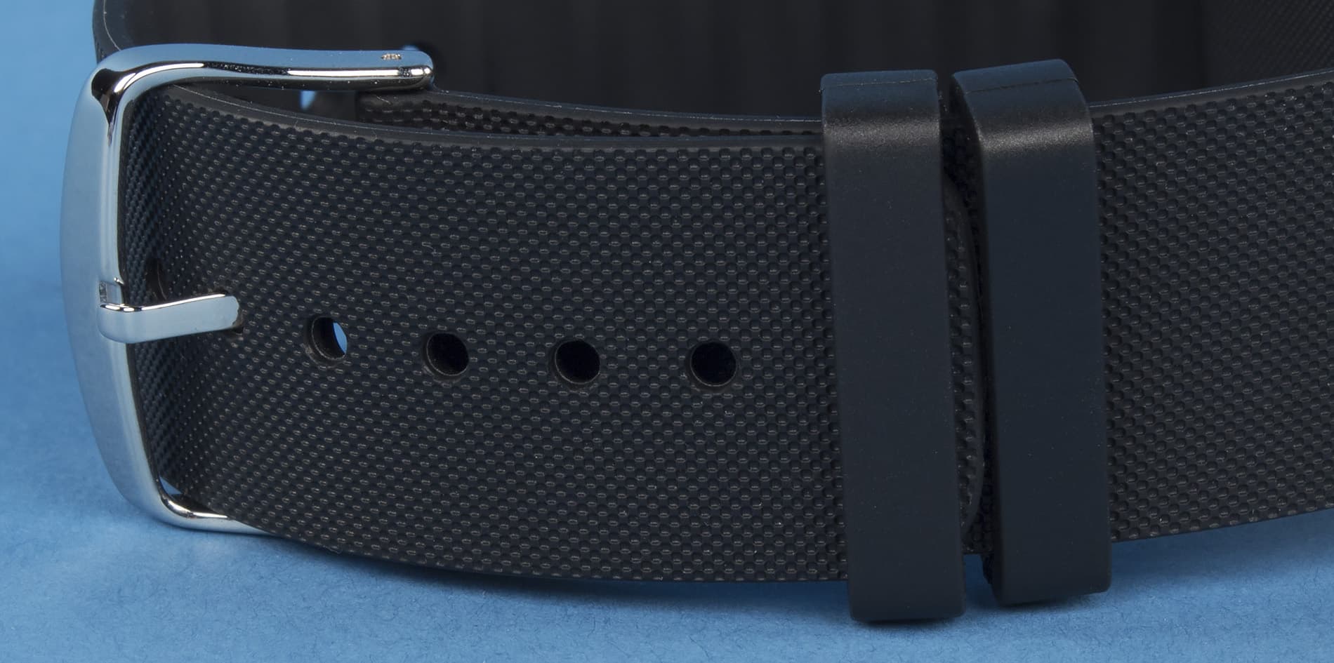 Такое же мелкое рифление есть и на внешней поверхности силиконового ремешка. Внутренняя сторона ремешка гладкая, но с «канавками». Вероятно, это сделано для того, чтобы рука не так сильно потела, но она все равно потеет, и к вечеру часы уже очень хочется снять (уж не спать с ними — точно).