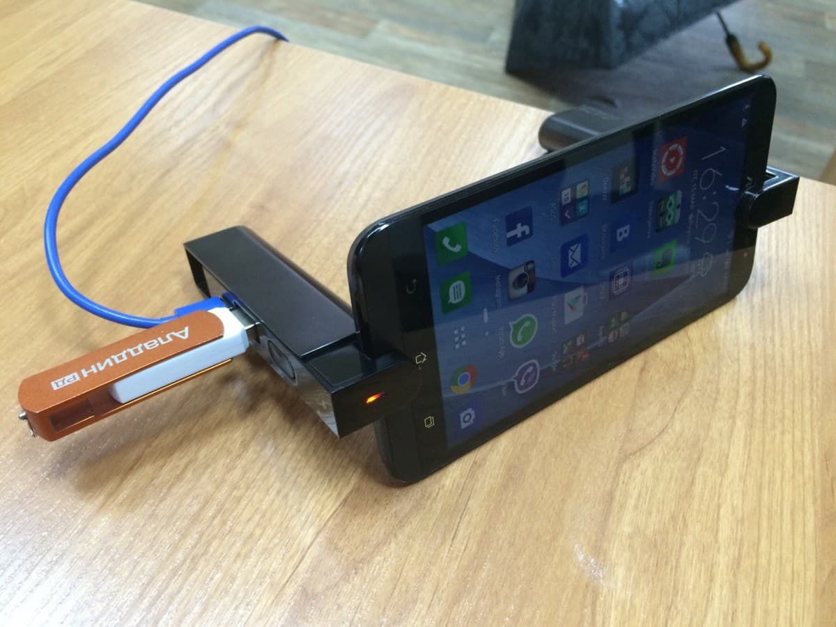 Половинки раздвигаются, в их пазы вставляется смартфон.