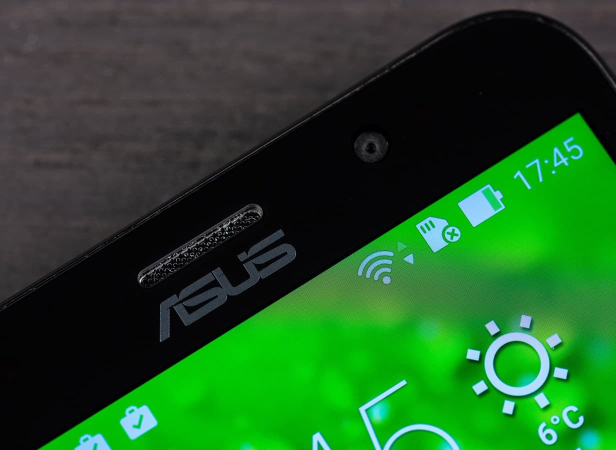 Сверху компактно расставлены объектив камеры со светодиодным индикатором, разговорный динамик, светочувствительный сенсор и логотип Asus. Благодаря экономии места производитель добился того, что дисплей занимает 72% фронтальной панели.