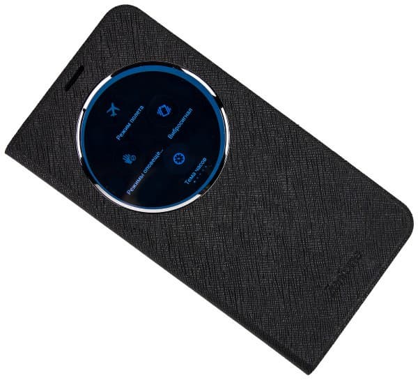 Чтобы замедлить неприятный процесс амортизации, Asus предлагает фирменный чехол-обложку Zenfone 2 View Cover Deluxe. Устанавливается она вместо стандартной тыловой панели. Покрытие обложки одинаково и спереди, и сзади. На ощупь оно напоминает кожу, но имеет более оригинальный рисунок, да и в эксплуатации удобней, чем стандартная крышечка.