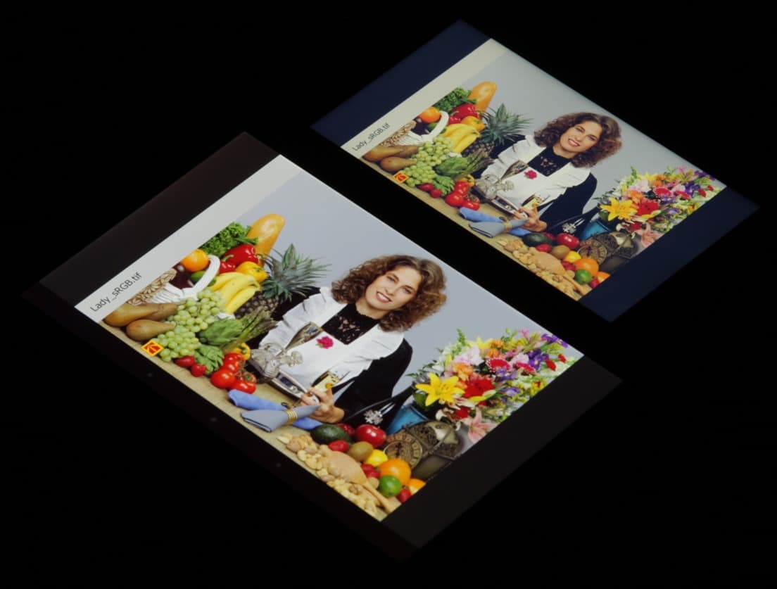 По критерию вывода кадров качество воспроизведения видеофайлов на экране самого устройства хорошее, так как кадры (или группы кадров) могут выводиться с более-менее равномерным чередованием интервалов и без пропусков кадров. При воспроизведении видеофайлов с разрешением 1920 на 1080 (1080p) на экране смартфона изображение собственно видеофайла выводится точно по границе экрана в истинном разрешении Full HD. Отображаемый на экране диапазон яркости зависит от фактического диапазона в видеофайле и для типичных файлов он равен стандартному диапазону 16—235, то есть в тенях и в светах отображаются все градации оттенков.