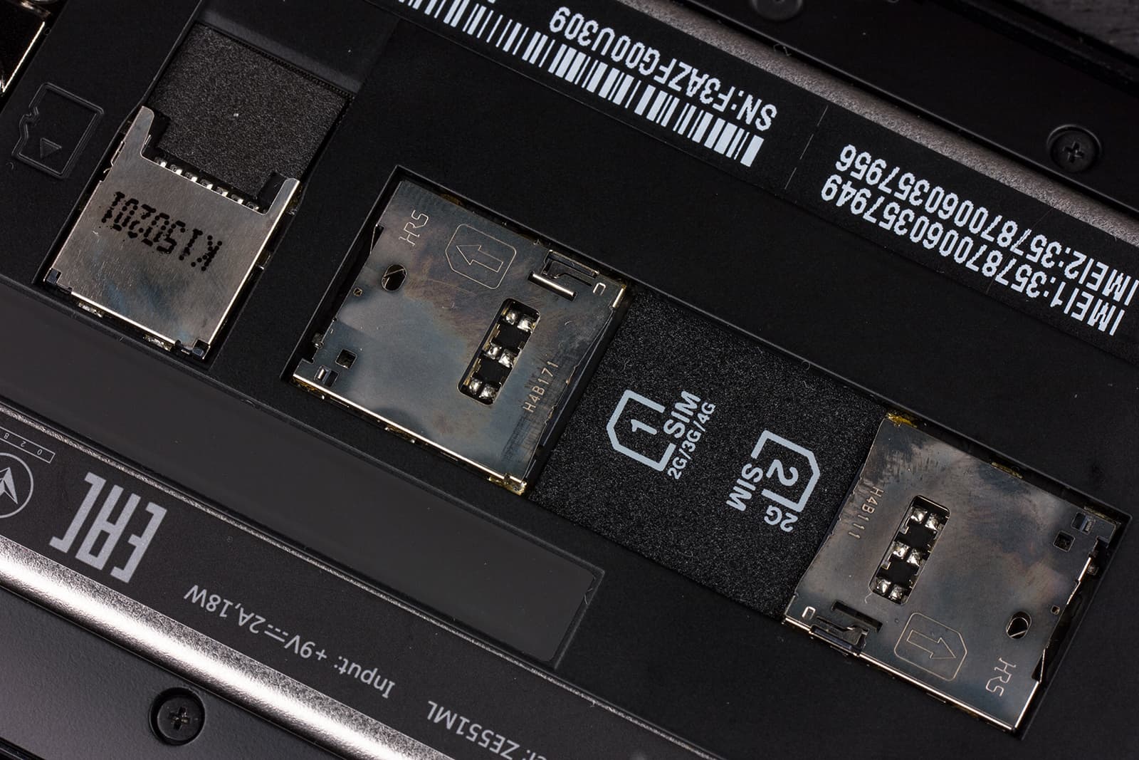 Смартфон имеет на борту два слота для карточек формата Micro-SIM. Первый слот поддерживает работу с любыми диапазонами мобильной связи, заявленными в спецификации. Второй слот способен функционировать лишь в сетях второго поколения, и передача данных ему недоступна. Хорошая новость заключается в том, что радиомодуля у смартфона тоже два: пока задействуется одна SIM-карта, вторая также остается активной.