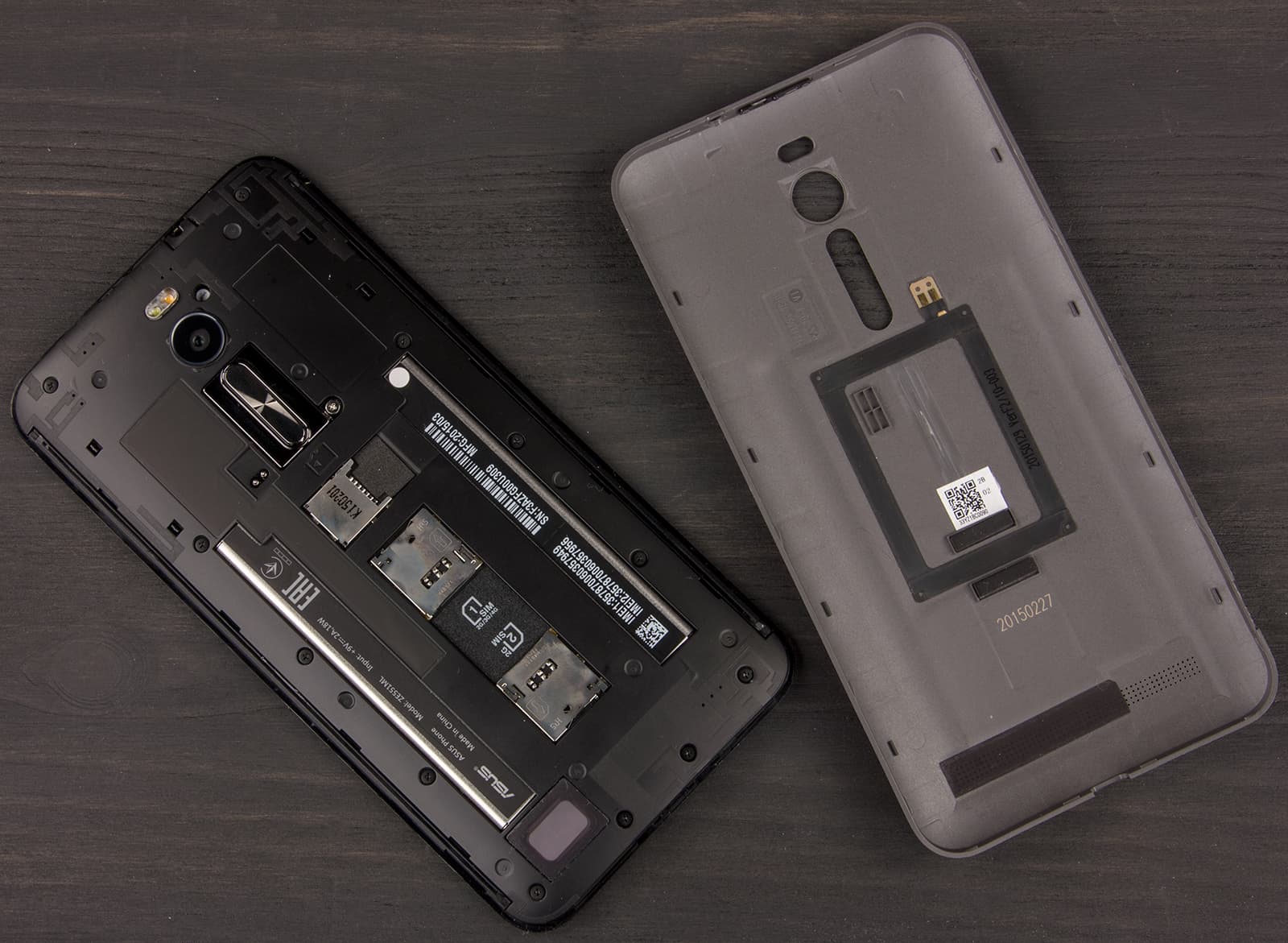 Под крышкой находится два слота Micro-SIM, причем неравноценных. В Zenfone 5 режимы работы можно было легко переключить через интерфейс ОС, а сейчас для этого придется снимать крышку. Рядом находится слот для microSD, позволяющий расширить память на 64 ГБ.