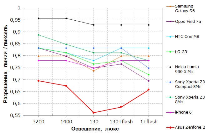 Лабораторный тест весьма красноречиво дает понять, что камерой лучше всего снимать на улице при хорошем освещении. И даже в этом случае она будет выдавать лишь средний результат.