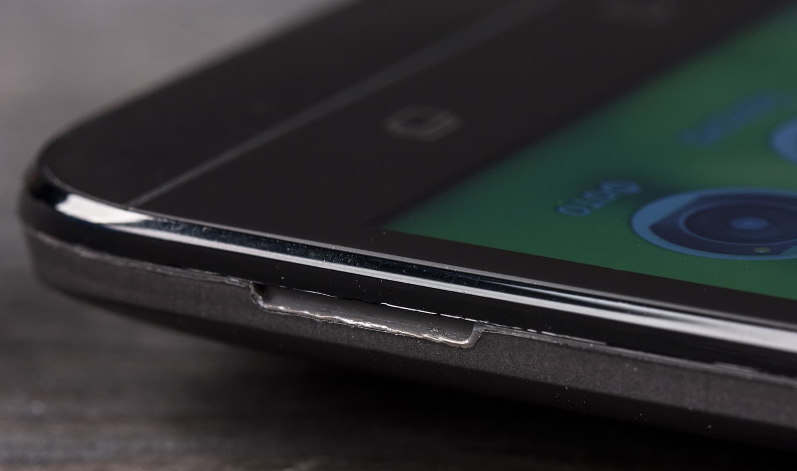 Гладкие боковые грани смартфона лишены каких-либо функциональных элементов, только справа внизу имеется прорезь, необходимая, чтобы отсоединить заднюю крышку. Сделать это без помощи ногтей не получится. И даже если маникюр не жалко, могут возникнуть проблемы с первой защелкой. Здесь необходимо делать все как в инструкции: одной рукой вы поддеваете заднюю крышку, другой — давите на телефон в противоположную сторону. Через несколько таких вскрытий у нашего образца начала отходить крышка в районе верхней грани. Причем ширины прорези было достаточно, чтобы туда забивались песчинки, не говоря уже о более мелких частицах.