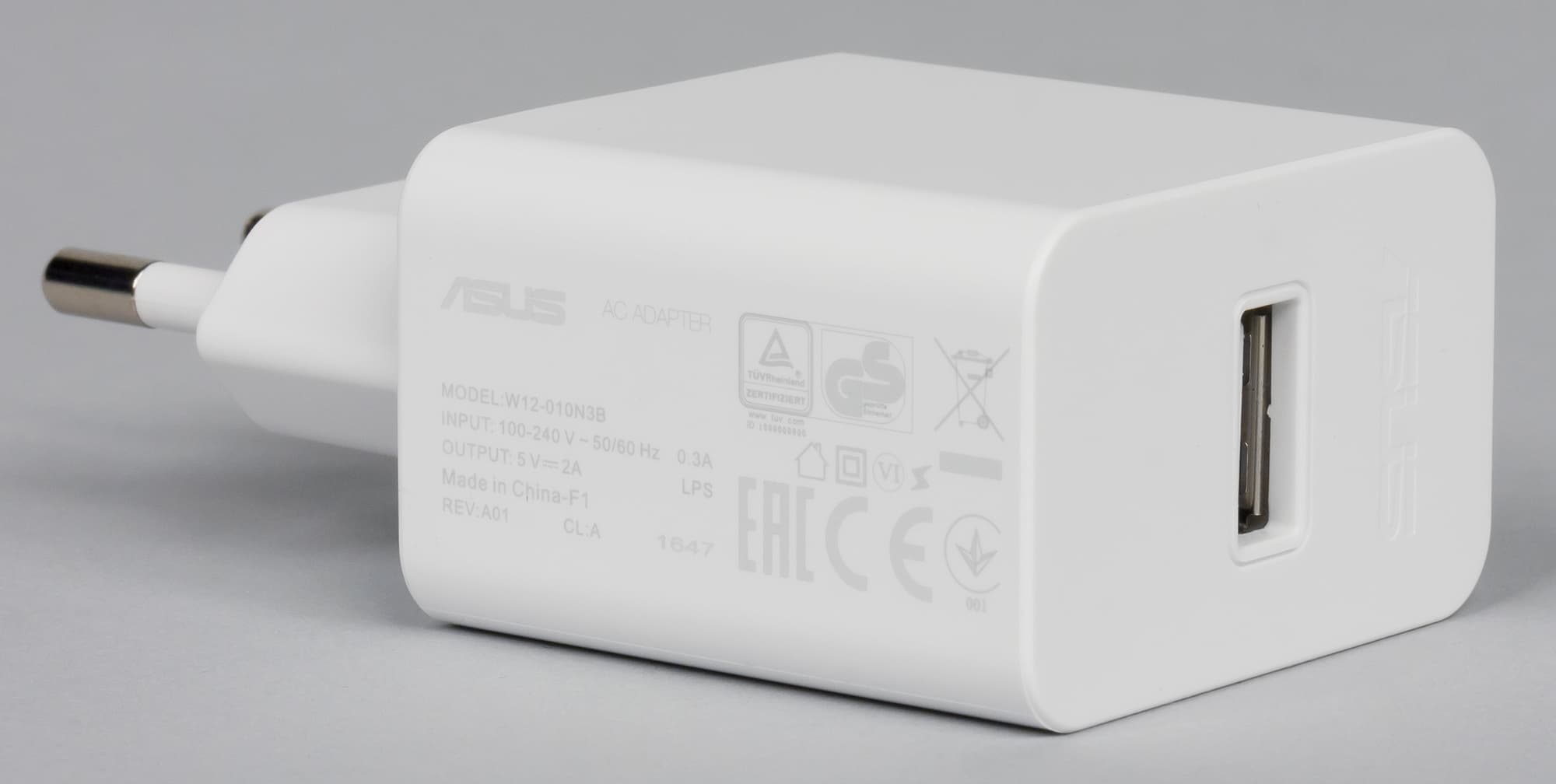 В коробке нашелся соединительный кабель, стандартный сетевой адаптер с выходным током и напряжением 5 В 2 А, ключик для извлечения карт. Комплектация точно такая же, как у Zenfone 3 Max. Здесь тоже в комплект не вложили проводную стереогарнитуру, но присутствует OTG-переходник. Это обусловлено тем, что Zenfone 4 Max поддерживает реверсную зарядку сторонних устройств от своего разъема Micro-USB.