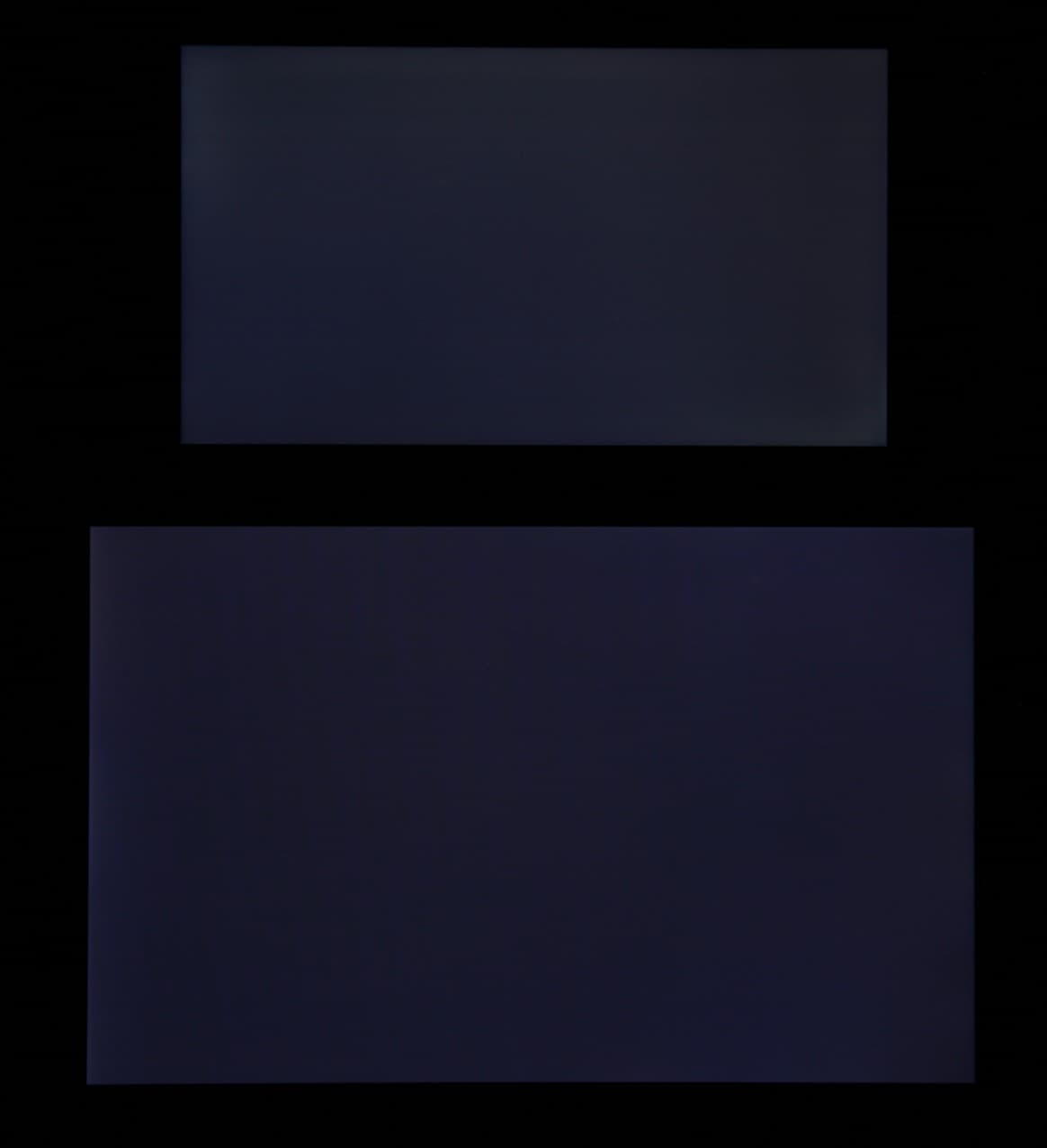 Яркость под углом у экранов уменьшилась (как минимум в 5 раз, исходя из разницы в выдержке), но у Asus Zenfone 4 Max снижение яркости чуть больше. Черное поле при отклонении по диагонали высветляется сильно и приобретает фиолетовый оттенок. Фотографии ниже это демонстрируют (яркость белых участков в перпендикулярном плоскости экранов направлении одинаковая!):