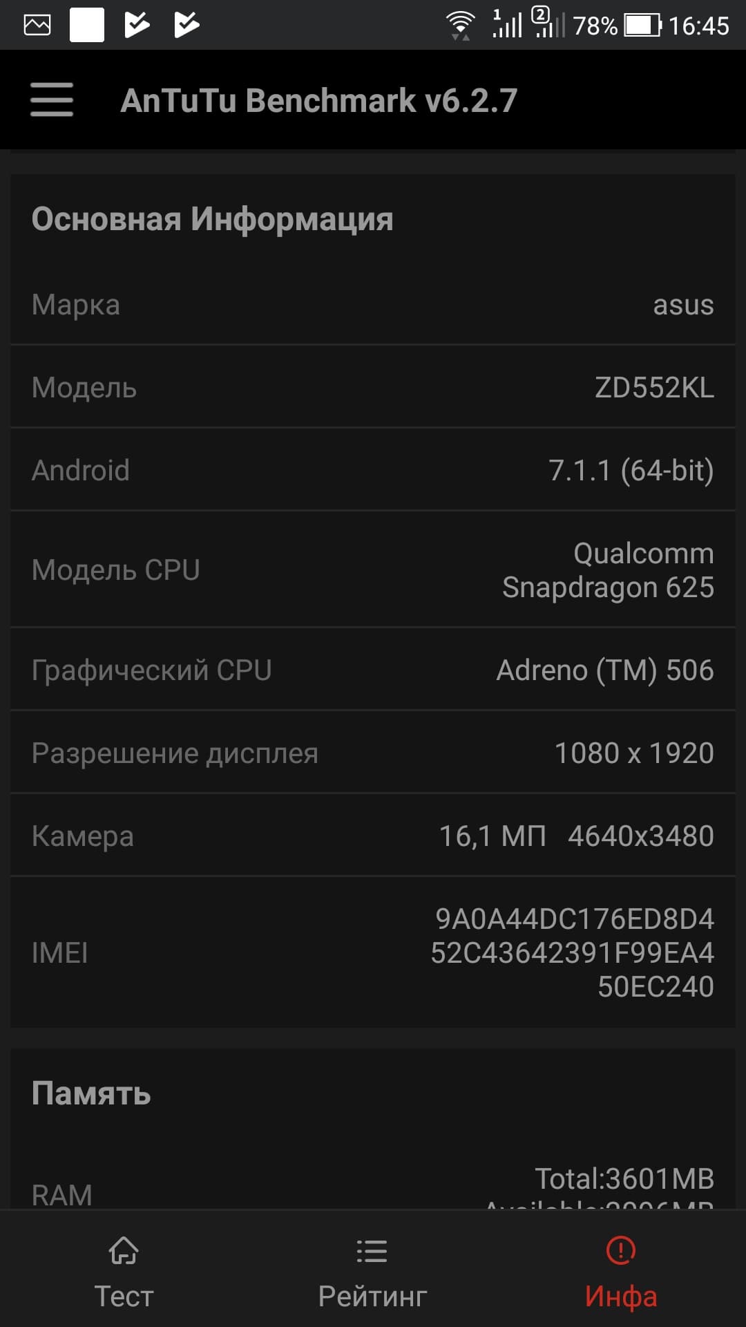 Основные характеристики Asus ZenFone 4 Selfie Pro (модель ZD552KL)