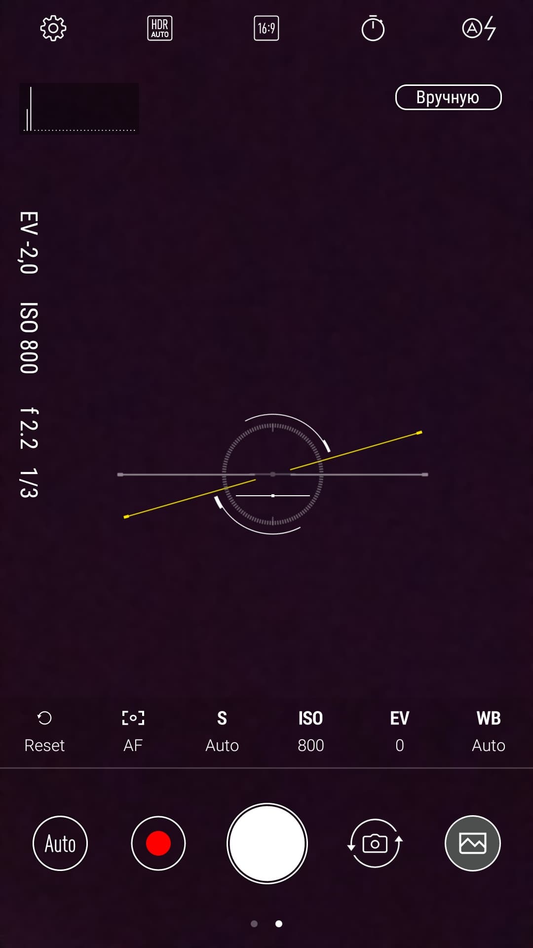 В роли тыльной камеры (в случае этого аппарата вряд ли можно уверенно говорить об основной камере) используется одиночный модуль с разрешением сенсора 16 Мп и объективом с диафрагмой f/2,2 и углом обзора 80°. У него есть уже и стабилизация изображения, и система фазовой автофокусировки. Меню стандартно для интерфейса ZenUI 4.0, оно богато на настройки. Есть и ручной режим Pro, в котором можно найти шкалу экспокоррекции, настроить баланс белого, выставить светочувствительность до ISO 3200. Присутствует штатная возможность сохранения снимков в RAW.