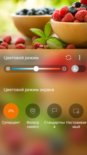 При выборе первого, Суперцвет, который установлен по умолчанию, цветопередача становится заметно хуже, цвета очень перенасыщенные и неестественные: