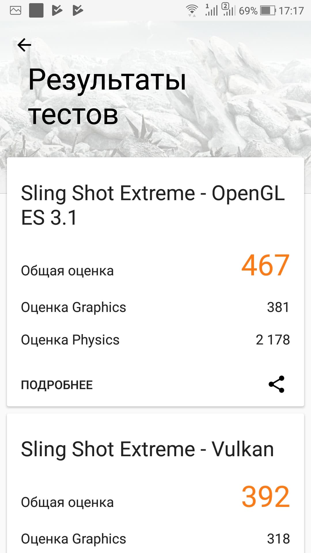 | 3DMark Ice Storm Sling Shot ES 3.1 (больше — лучше) | 467 | 821 | 463 | 671 | 421 |