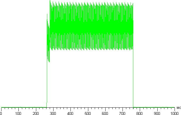 Переключение состояния элементов матрицы выполняется практически мгновенно, но на фронте включения (и реже выключения) может присутствовать ступенька шириной примерно 17 мс (что соответствует частоте обновления экрана). Например, так выглядит зависимость яркости от времени при переходе от черного к белому и обратно: