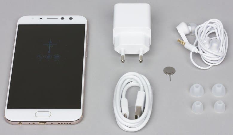Комплект включает USB-кабель и сетевой адаптер (5 В 2 А). Ключик для извлечения карт закреплен на картонной вставке. Кроме того, в набор вложили проводные стереонаушники с набором сменных резиновых накладок внутриканального типа. А вот гибким защитным чехлом, как центральная модель ZenFone 4, модель Selfie Pro не комплектуется. И это недостаток, потому что приобрести наушники на любой вкус и кошелек никаких проблем не представляет, а вот раздобыть четко подогнанный, хорошо сидящий чехол на такие не столь распространенные модели, как Asus ZenFone 4 Selfie Pro, гораздо труднее.