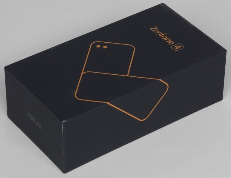 Упаковка Asus Zenfone 4 — простая и в то же время стильно оформленная коробка с черным бархатистым окрасом и золотистыми надписями. Содержимое внутри разложено по отдельным более мелким коробочкам.