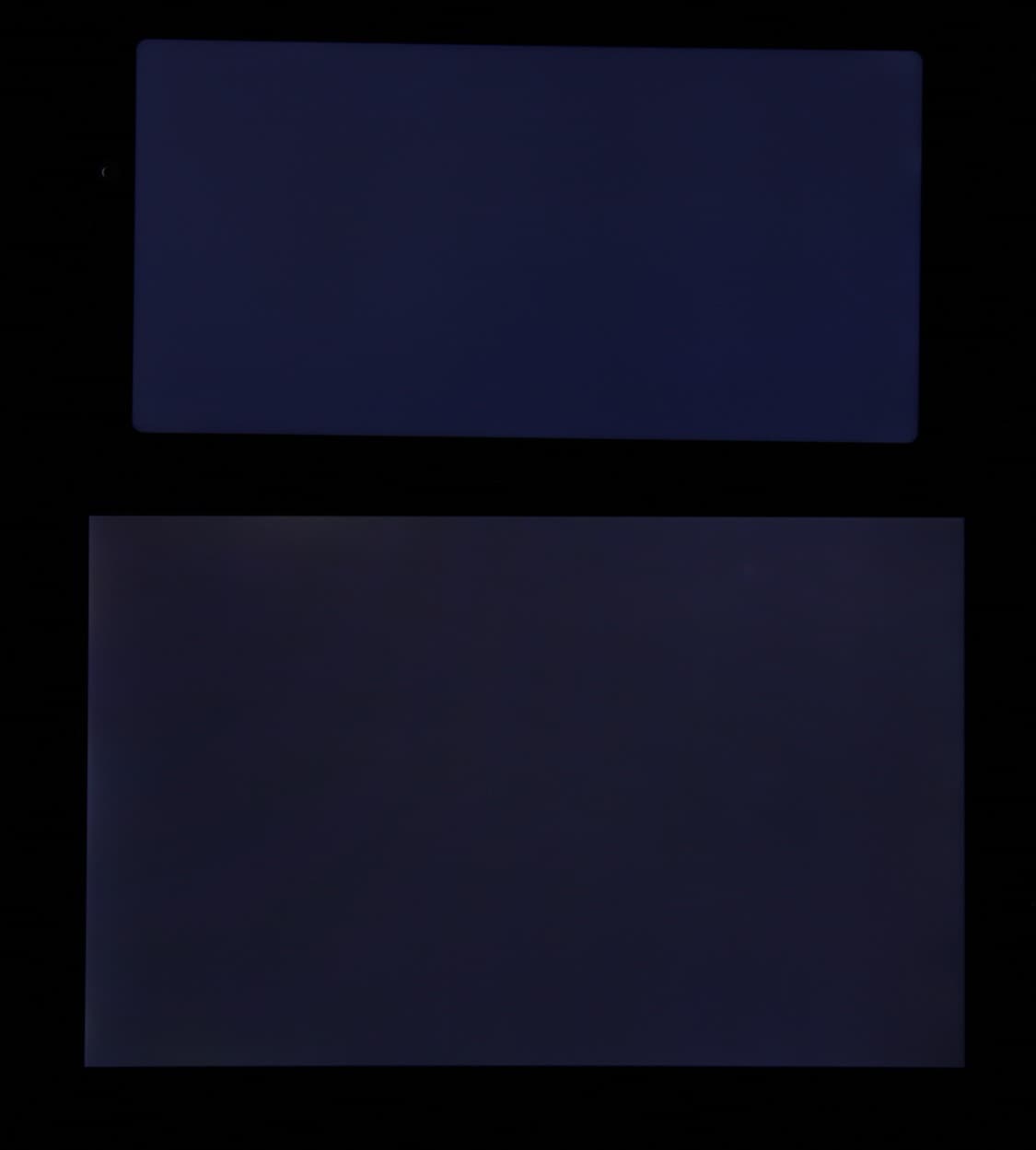 Яркость под углом у экранов уменьшилась (как минимум в 5 раз, исходя из разницы в выдержке), но у Asus ZenFone 5 Lite экран под этим углом все же чуть светлее. Черное поле при отклонении по диагонали высветляется сильно и приобретает синеватый оттенок. Фотографии ниже это демонстрируют (яркость белых участков в перпендикулярном плоскости экранов направлении одинаковая!):