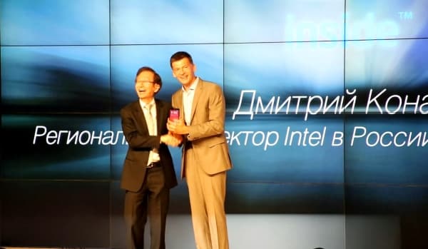 Зато в плане аппаратной платформы у смартфонов Asus Zenfone все в порядке: здесь используется двухъядерная SoC Intel Atom с поддержкой технологии Hyper-Threading, которая показывает весьма неплохие результаты производительности. Так, например, центральная модель Asus Zenfone 5, оснащенная процессором Intel Atom Z 2560 (1,6 ГГц), демонстрирует в тесте AnTuTu более 20К очков, что является отличным результатом для смартфона такого уровня. Желая продемонстрировать свою теплую дружбу с Intel, тайваньцы даже пригласили на сцену регионального директора Intel в России, Дмитрия Конаша, который произнес небольшую речь по поводу тесного сотрудничества двух компаний.